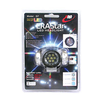 Головной, 7 светодиодов, 3 режима, водонепр., пластик, бл. (1/50/100)